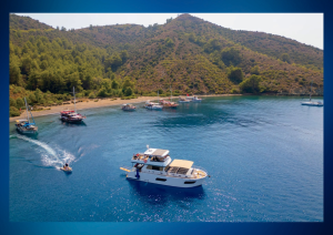 Fethiye Körfezi’nin kalbinde yer alan Göcek, çam ormanlarıyla çevrili dağların gölgesinde, dünyanın önde gelen yat limanlarından biri olarak mavi yolculuklara ilham veriyor. Kaan Bey Trawler/Motoryat, bu benzersiz coğrafyada konforlu ve şık bir seyir sunarak tatilinizi unutulmaz kılıyor.