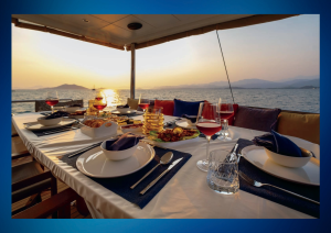 Teknede 1 kaptan, 1 aşçı ve 1 gemici olmak üzere deneyimli bir ekip size hizmet vermektedir. Yemekler, tamamen sizin tercihleriniz doğrultusunda hazırlanır. Aşçınız, seyir öncesinde sizinle iletişime geçerek alışveriş listenizi planlar. Dilerseniz yiyeceklerinizi kendiniz temin edebilir ya da ekipten destek alabilirsiniz.