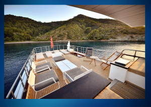 Mürettebat için ayrı yaşam alanları, tam donanımlı mutfağı, açık ve kapalı yemek yeme alanları ile misafirlerinin rahatlığını ön planda tutar. Göz alıcı güzellikteki Göcek koylarında, yeterli sayıdaki güneşlenme minderleri, sandalyeler ve servis takımları ile keyif dolu anlar yaşayabilirsiniz.